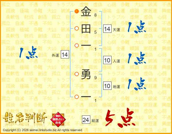金田一勇一さんの総運は24画の5点!