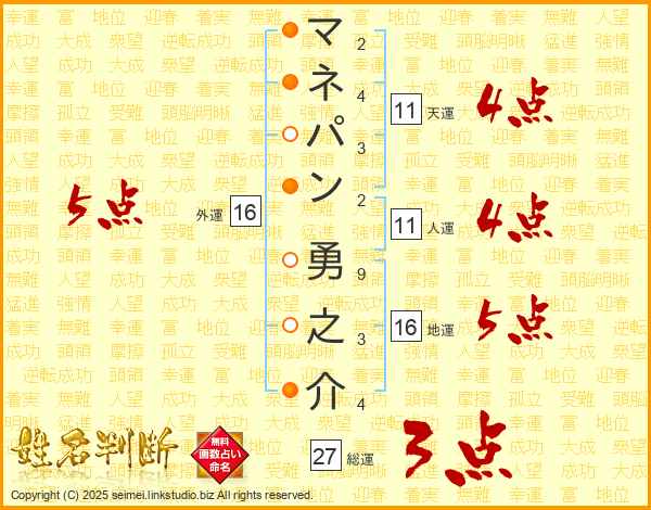 マ(2画)ネ(4画)パ(3画)ン(2画) 勇(9画)之(3画)介(4画)