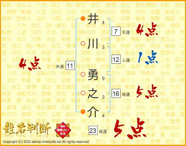 井川勇之介さんの総運は23画の5点!