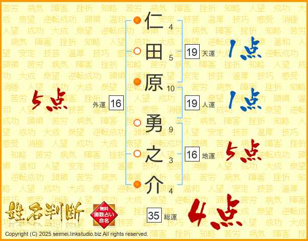 仁田原勇之介さんの総運は35画の4点!