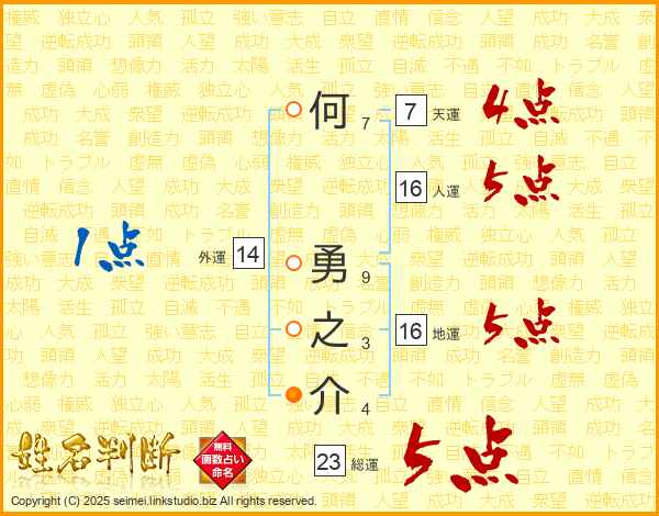 何勇之介さんの総運は23画の5点!