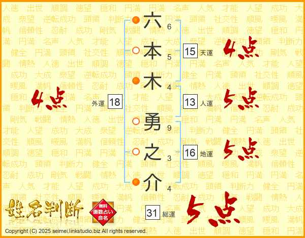 六(6画)本(5画)木(4画) 勇(9画)之(3画)介(4画)