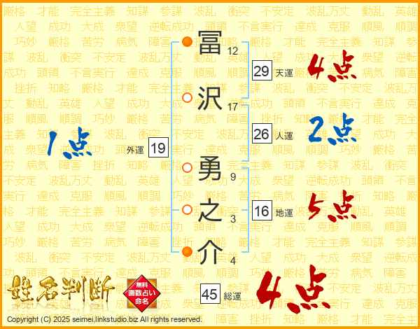 冨(12画)沢(17画) 勇(9画)之(3画)介(4画)