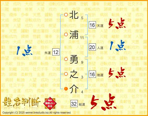 北浦勇之介さんの天運は16画の5点!