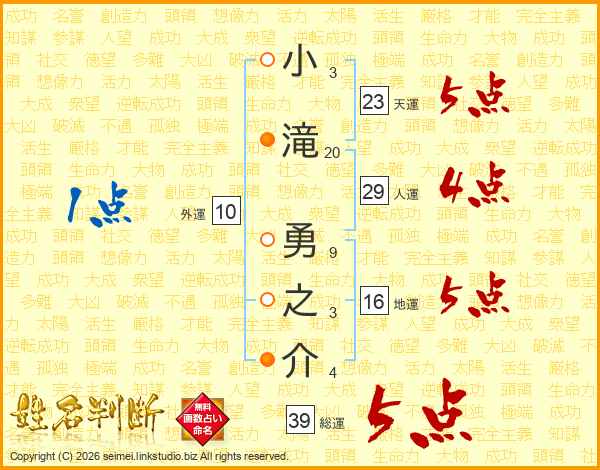 小滝勇之介さんの総運は39画の5点!