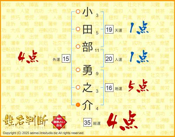 小(3画)田(5画)部(11画) 勇(9画)之(3画)介(4画)