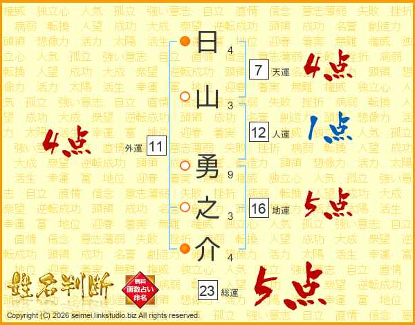 日山勇之介さんの総運は23画の5点!