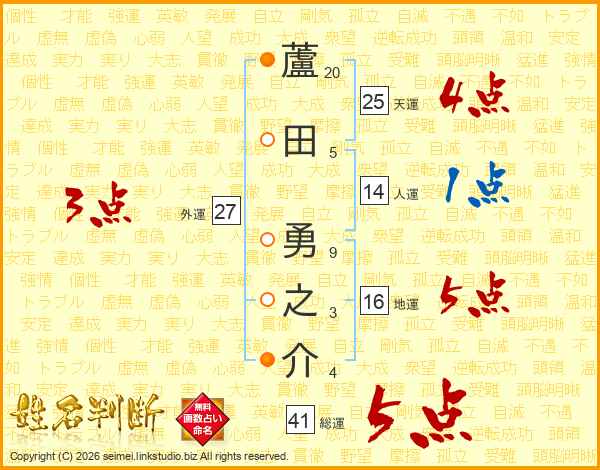 蘆田勇之介さんの天運は25画の4点!