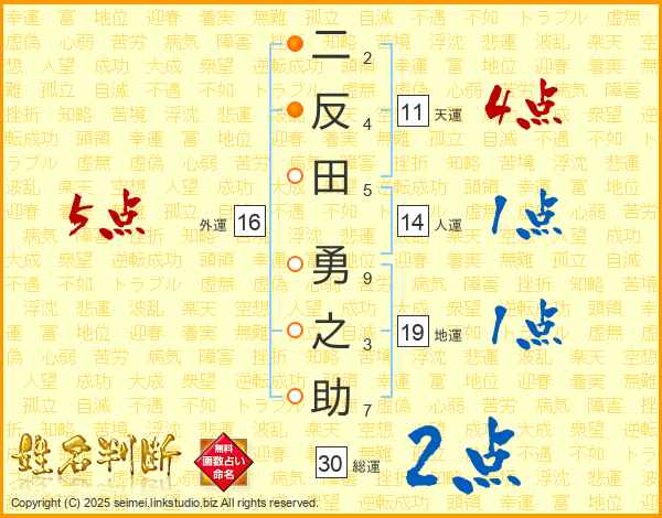 二(2画)反(4画)田(5画) 勇(9画)之(3画)助(7画)