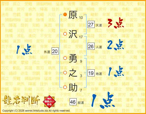 原沢勇之助さんの総運は46画の1点!