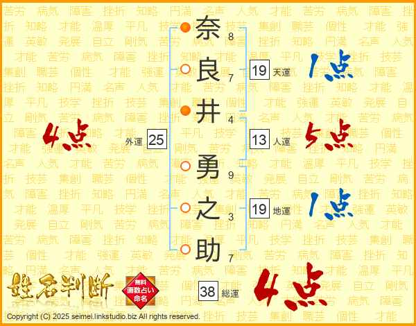奈(8画)良(7画)井(4画) 勇(9画)之(3画)助(7画)