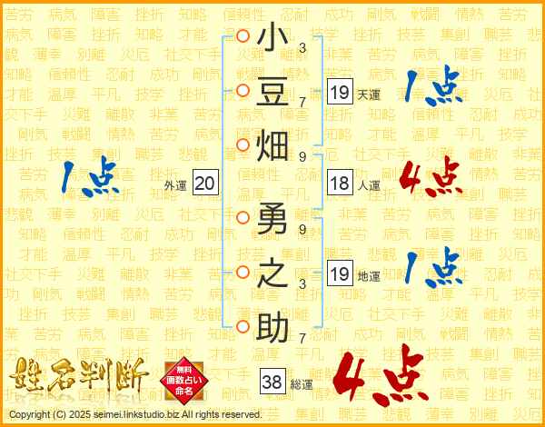 小豆畑勇之助さんの総運は38画の4点!