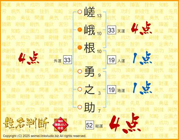 嵯峨根勇之助さんの総運は52画の4点!