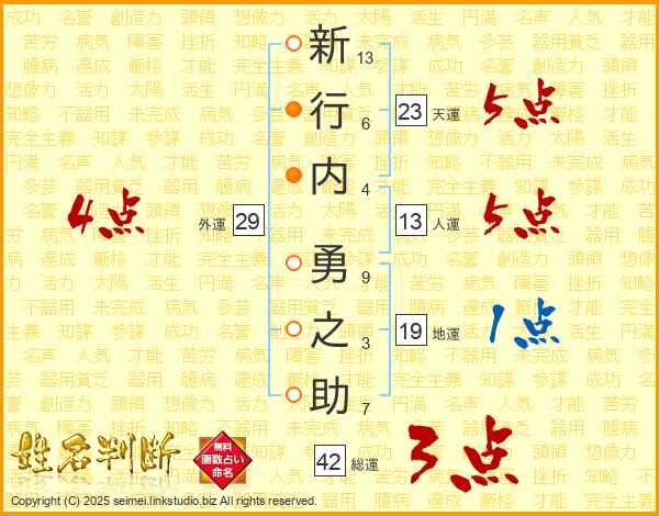 新(13画)行(6画)内(4画) 勇(9画)之(3画)助(7画)
