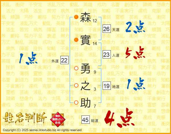 森實勇之助さんの天運は26画の2点!