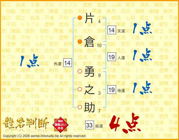 片倉勇之助さんの総運は33画の4点!