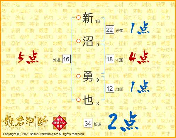 新沼勇也さんの天運は22画の1点!