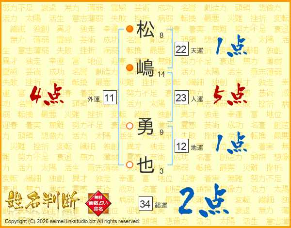 松嶋勇也さんの総運は34画の2点!
