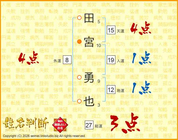 田宮勇也さんの総運は27画の3点!