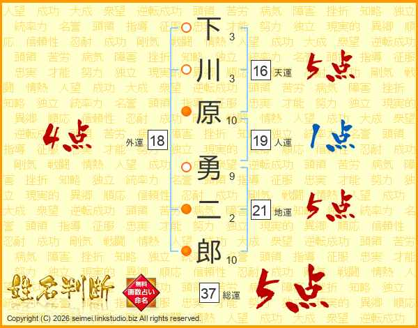 下川原勇二郎さんの総運は37画の5点!