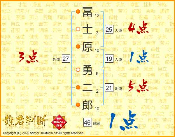 冨(12画)士(3画)原(10画) 勇(9画)二(2画)郎(10画)