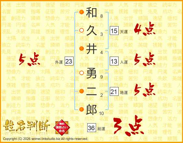 和(8画)久(3画)井(4画) 勇(9画)二(2画)郎(10画)