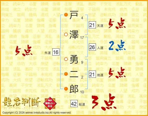 戸(4画)澤(17画) 勇(9画)二(2画)郎(10画)