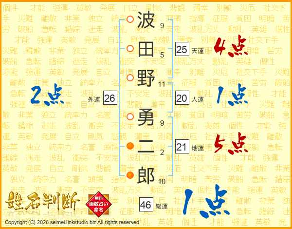 波田野勇二郎さんの総運は46画の1点!