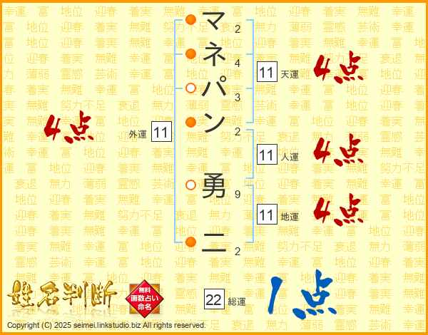 マネパン勇二さんの天運は11画の4点!