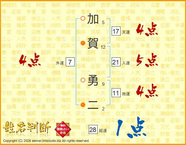 加賀勇二さんの総運は28画の1点!