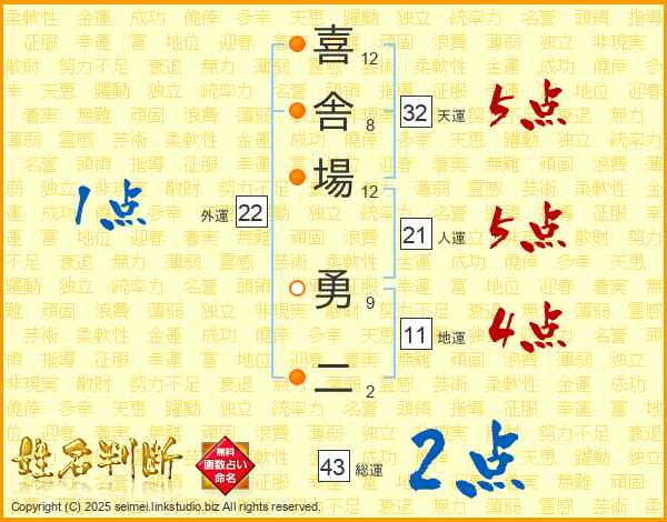 喜舎場勇二さんの総運は43画の2点!