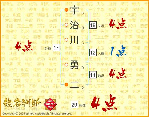 宇治川勇二さんの総運は29画の4点!