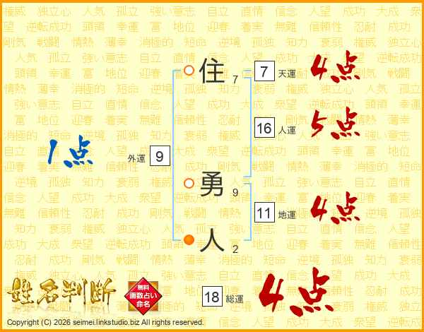 住勇人さんの総運は18画の4点!