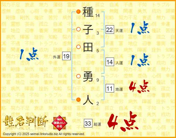種子田勇人さんの天運は22画の1点!
