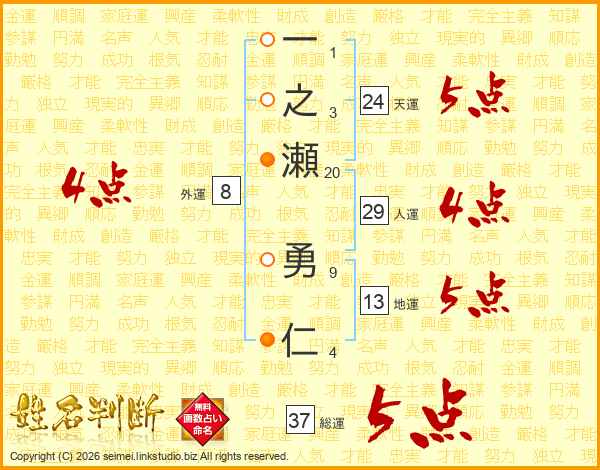 一之瀬勇仁さんの総運は37画の5点!