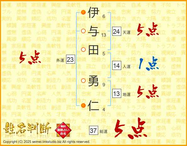 伊与田勇仁さんの総運は37画の5点!