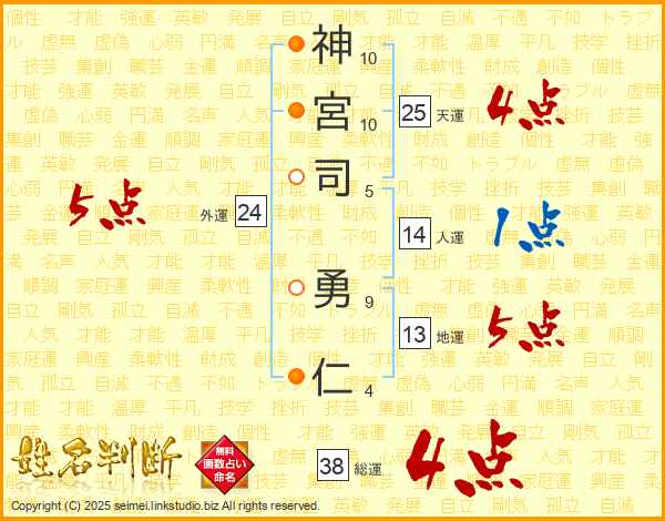 神宮司勇仁さんの総運は38画の4点!