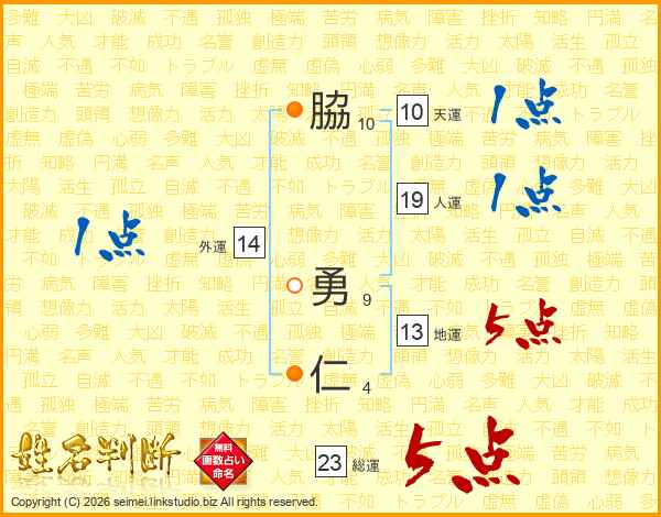 脇勇仁さんの総運は23画の5点!