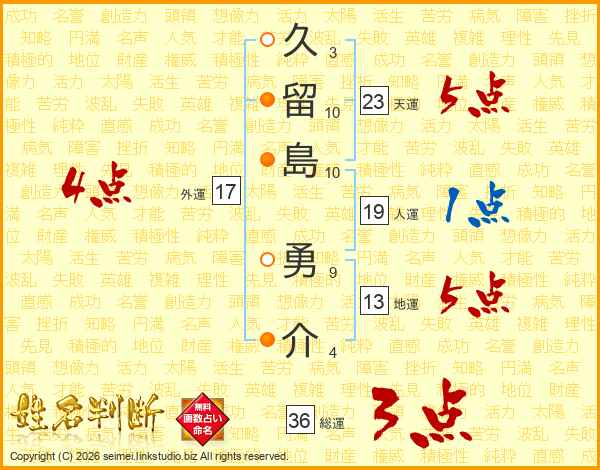 久留島勇介さんの天運は23画の5点!