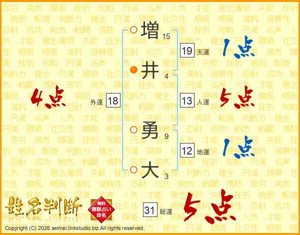 増井勇大さんの総運は31画の5点!