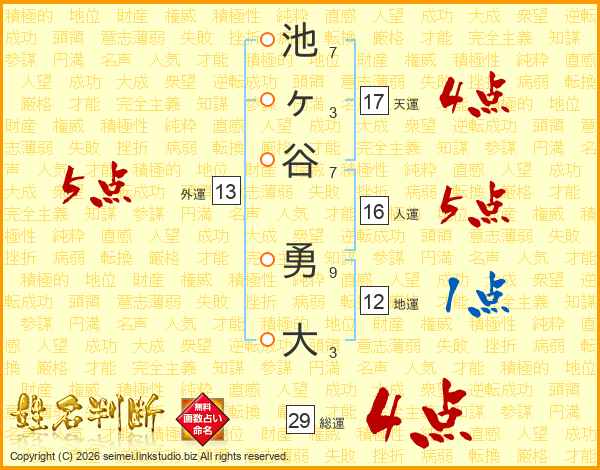 池ヶ谷勇大さんの天運は17画の4点!