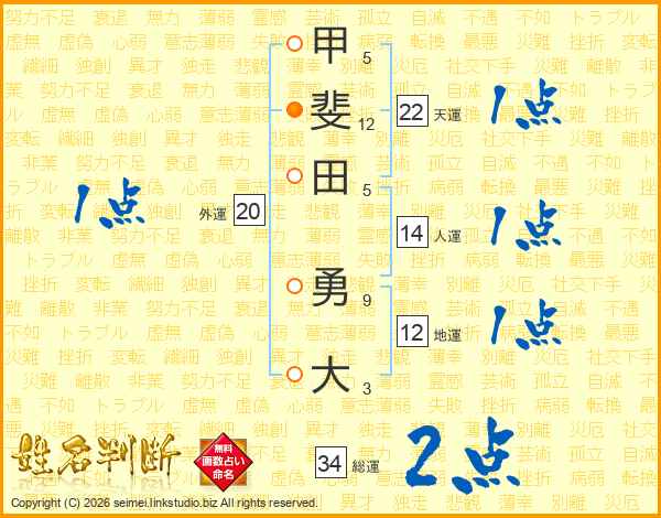 甲斐田勇大さんの総運は34画の2点!