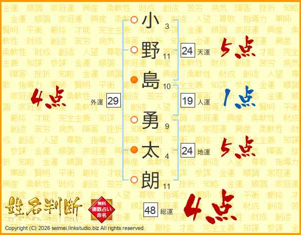 小野島勇太朗さんの総運は48画の4点!