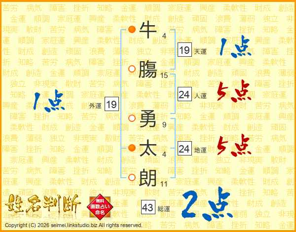 牛膓勇太朗さんの総運は43画の2点!