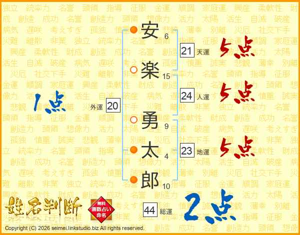 安楽勇太郎さんの総運は44画の2点!