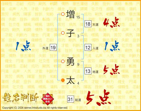 増子勇太さんの総運は31画の5点!