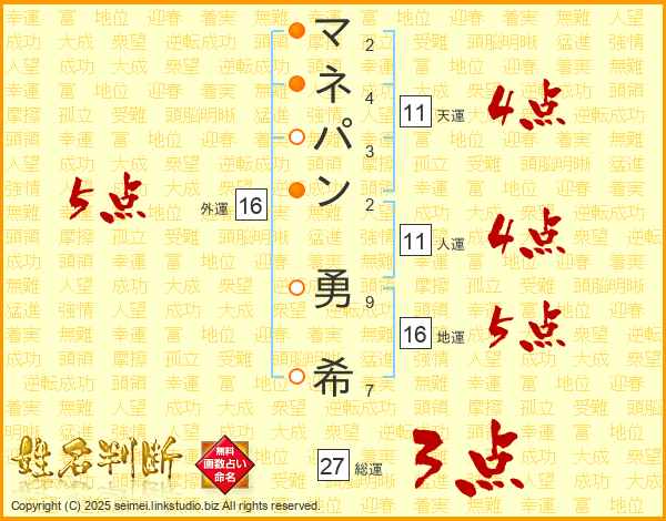 マネパン勇希さんの外運は16画の5点!
