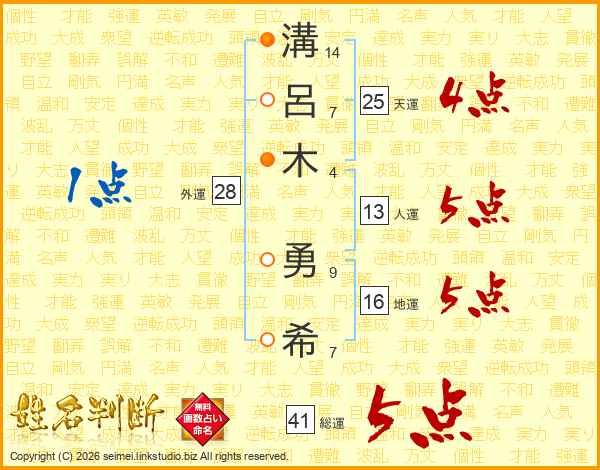 溝(14画)呂(7画)木(4画) 勇(9画)希(7画)