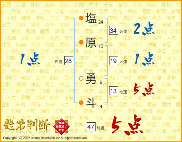 塩原勇斗さんの総運は47画の5点!