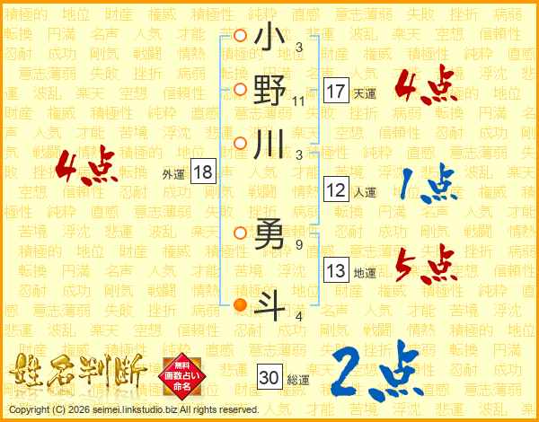 小野川勇斗さんの総運は30画の2点!